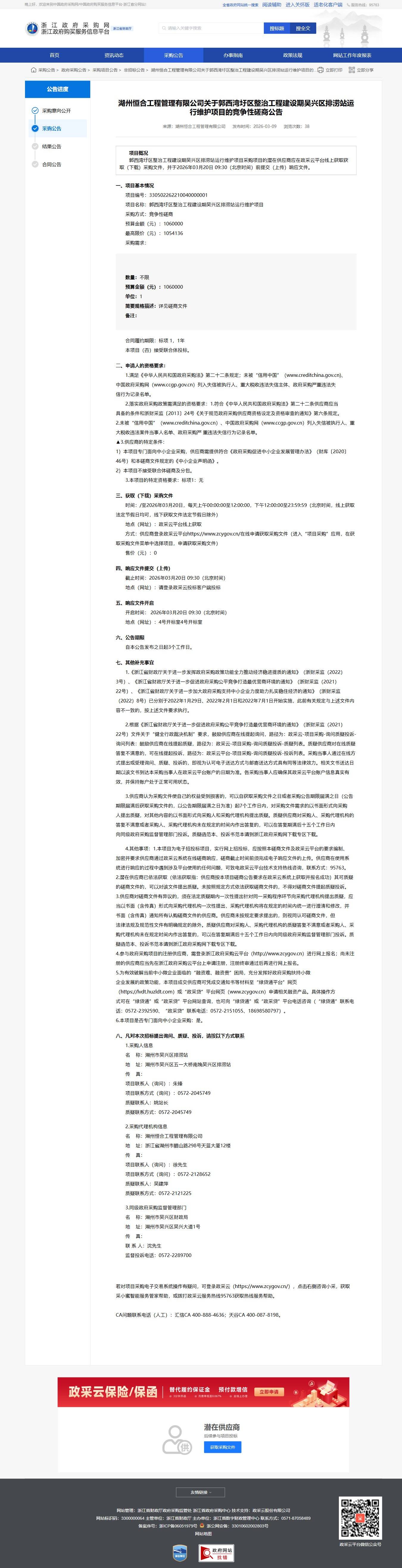 浙江關于郭西灣圩區(qū)整治工程建設期吳興區(qū)排澇站運行維護項目的競爭性磋商公告
