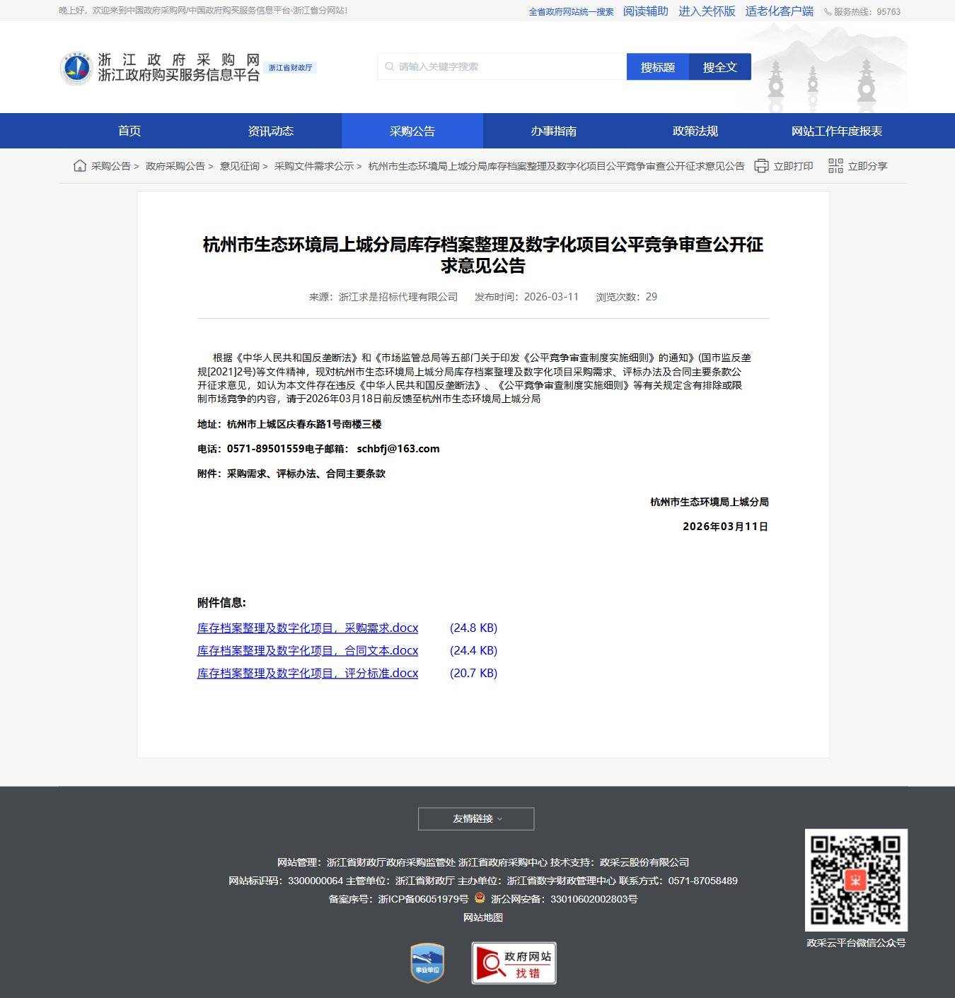 浙江杭州市生態(tài)環(huán)境局上城分局庫(kù)存檔案整理及數(shù)字化項(xiàng)目公平競(jìng)爭(zhēng)審查公開(kāi)征求意見(jiàn)公告