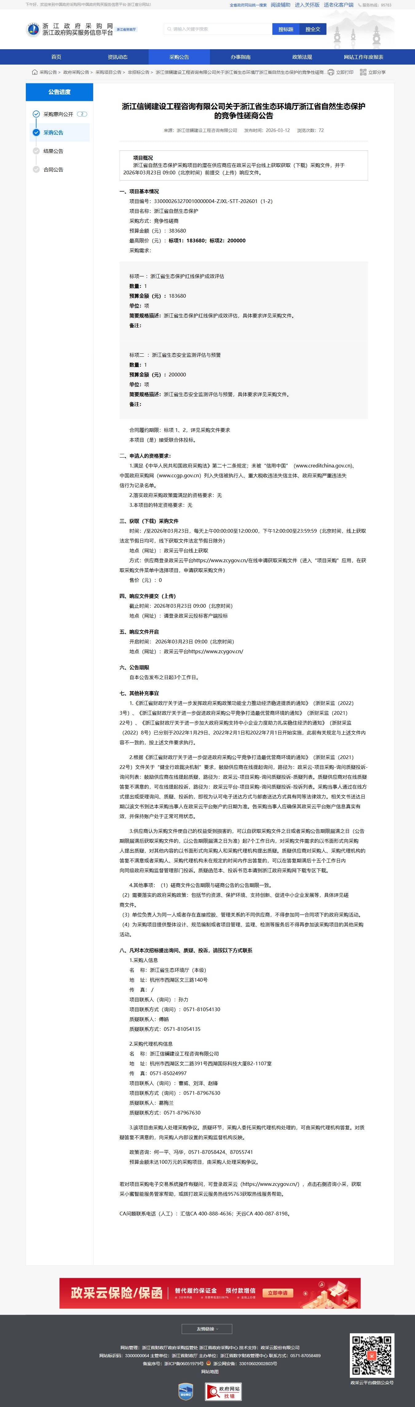 浙江關于浙江省生態環境廳浙江省自然生態保護的競爭性磋商公告