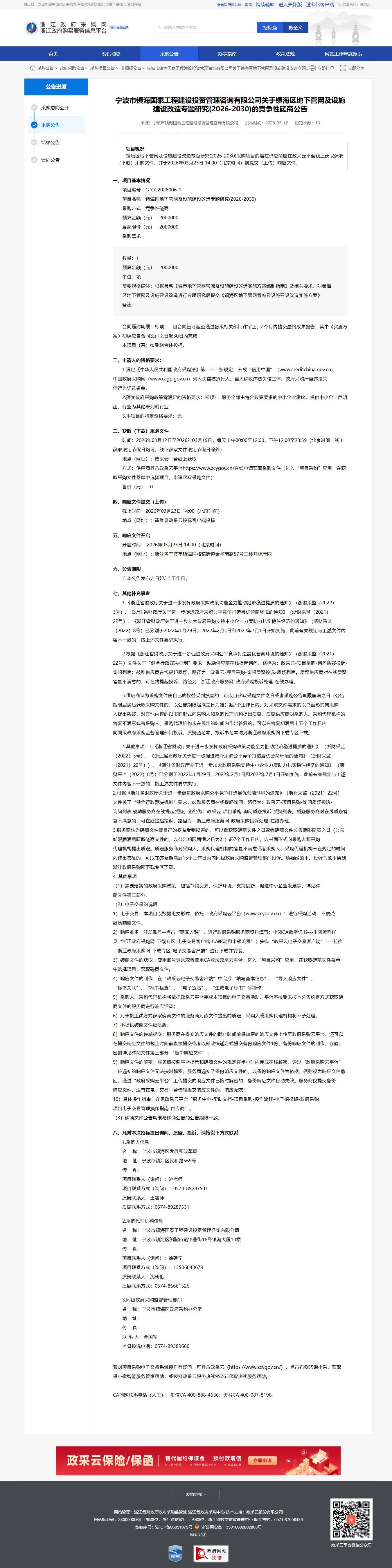寧波市鎮海國泰工程建設投資管理咨詢有限公司關于鎮海區地下管網及設施建設改造專題研究的競爭性磋商公告