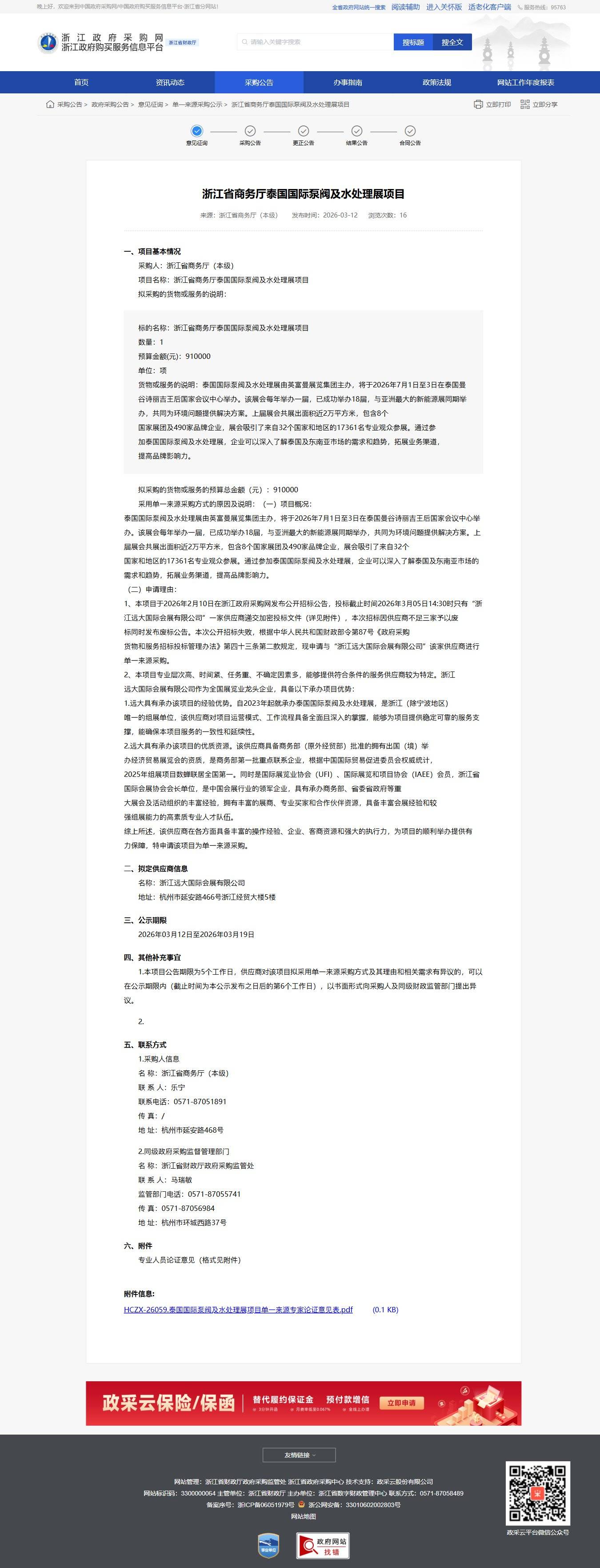 浙江省商務廳泰國國際泵閥及水處理展項目公告