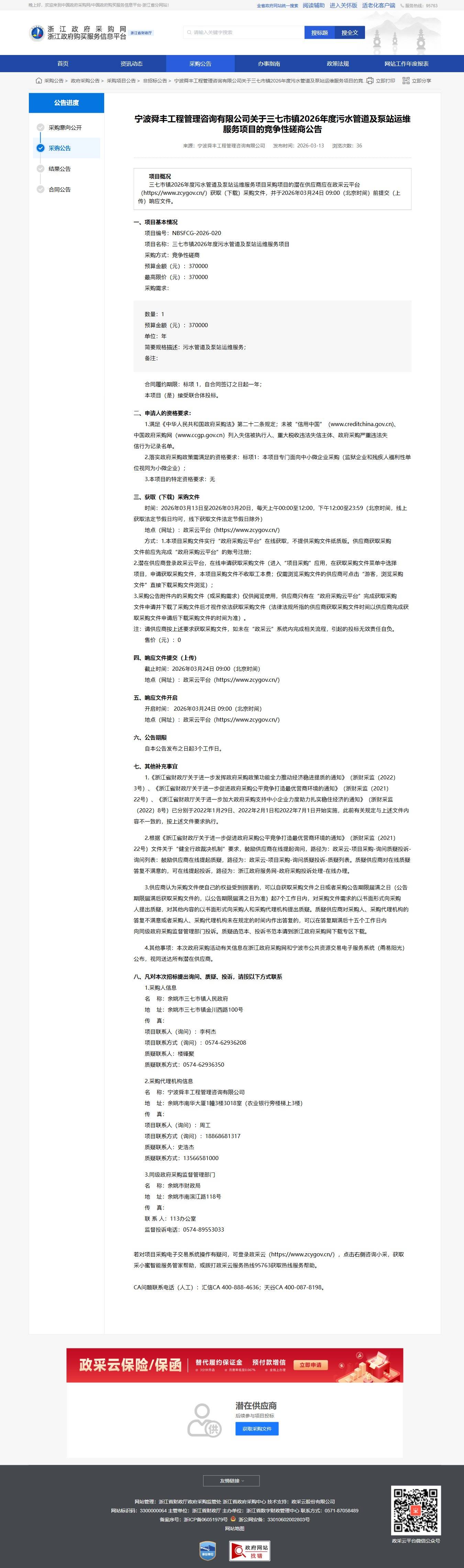 寧波至豐工程管理咨詢有限公司關(guān)于三七市鎮(zhèn)2026年度污水管道及泵站運維服務(wù)項目的競爭性磋商公告