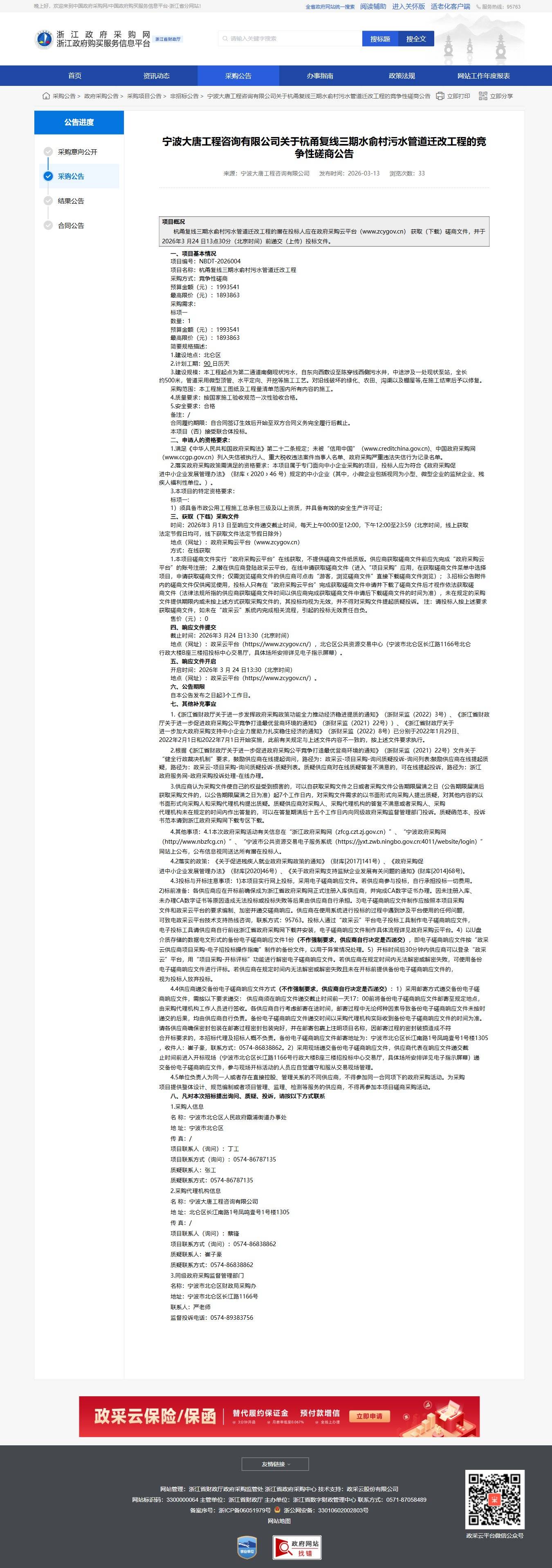浙江關于杭甬復線三期水俞村污水管道遷改工程的競爭性磋商公告