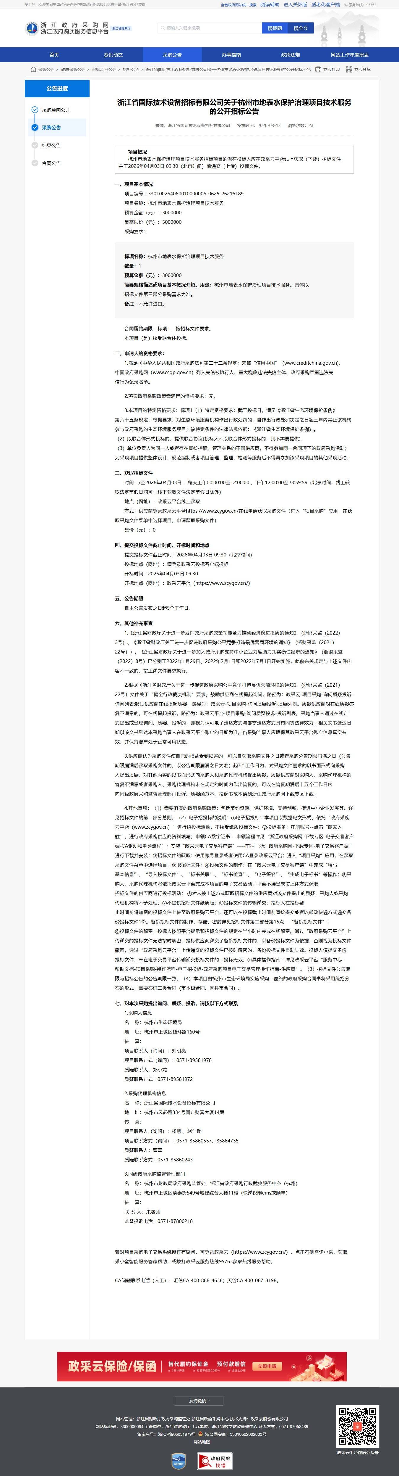 項(xiàng)目名稱(chēng):杭州市地表水保護(hù)治理項(xiàng)目技術(shù)服務(wù)