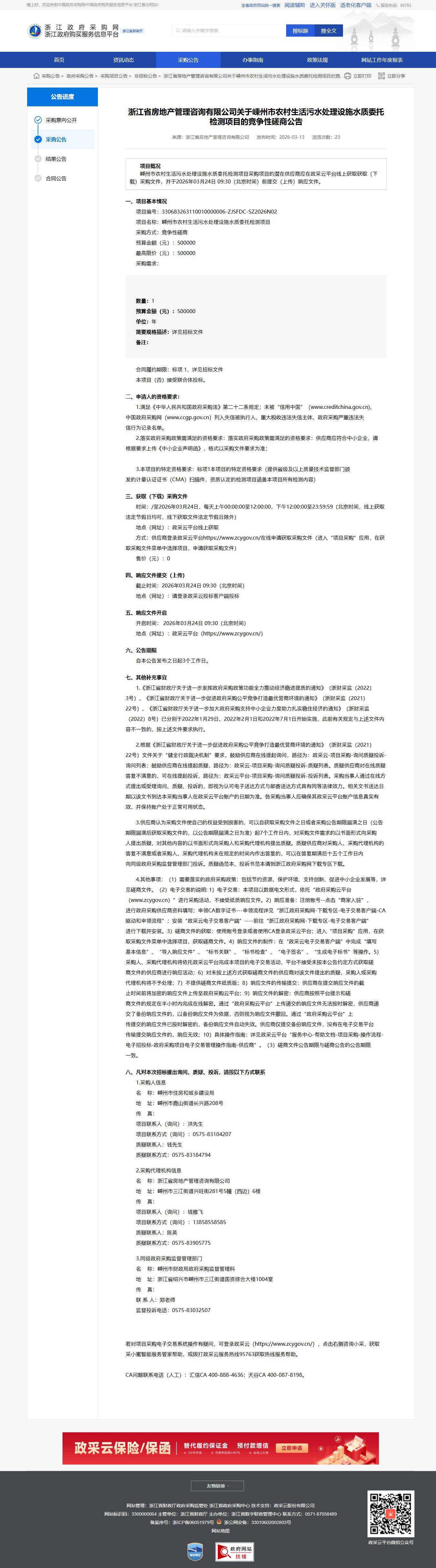 采購公告來源:浙江省房地產管理咨詢有限公司發布時間:2026-03-13