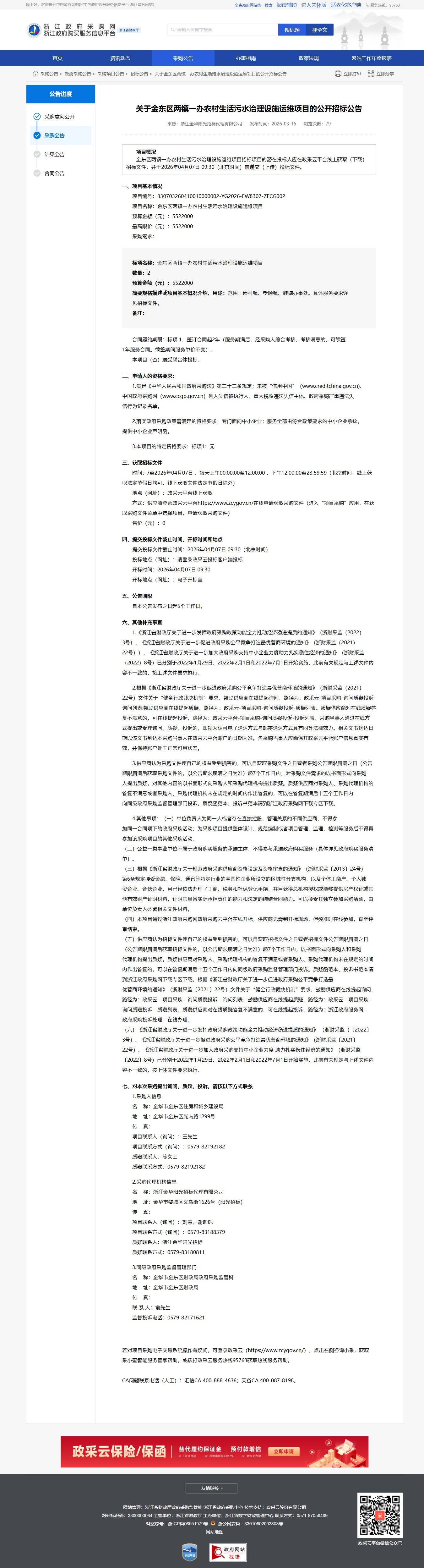 浙江關(guān)于金東區(qū)兩鎮(zhèn)一辦農(nóng)村生活污水治理設(shè)施運維項目的公開招標公告