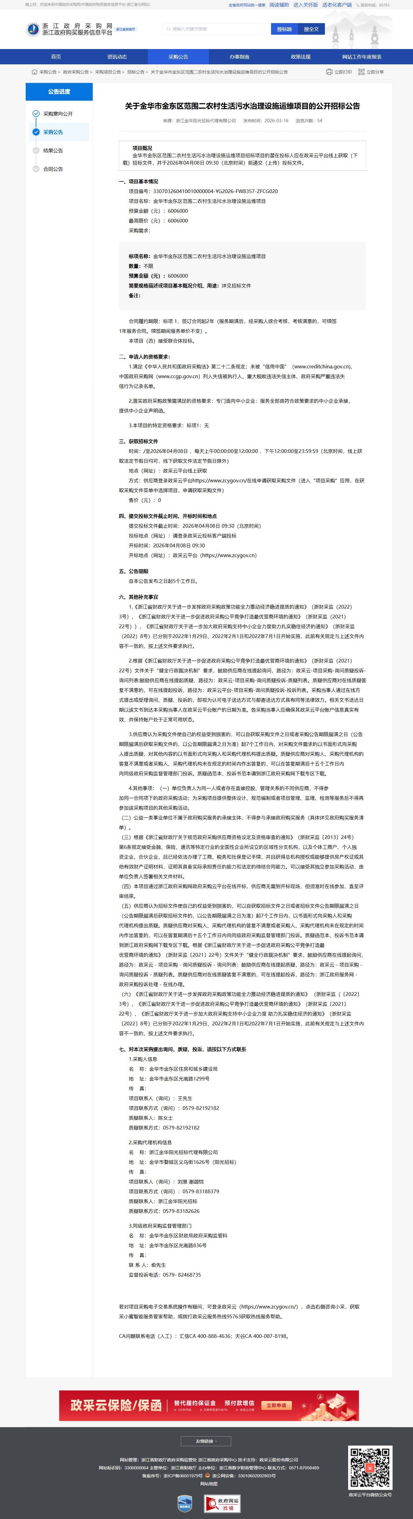 項目編號:330703260410010000004-YG2026-FW8357-ZFCG020