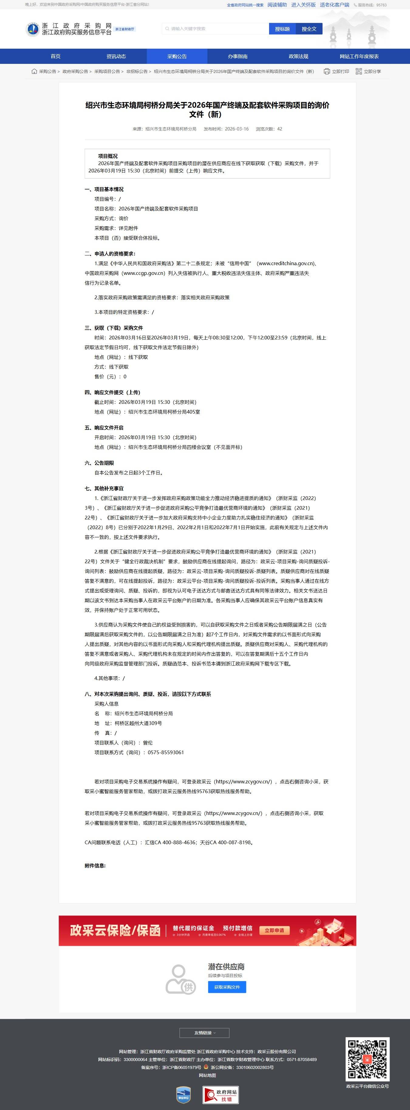 浙江關于2026年國產終端及配套軟件采購項目的詢價文件(新)紹興市生態環境局柯橋分局