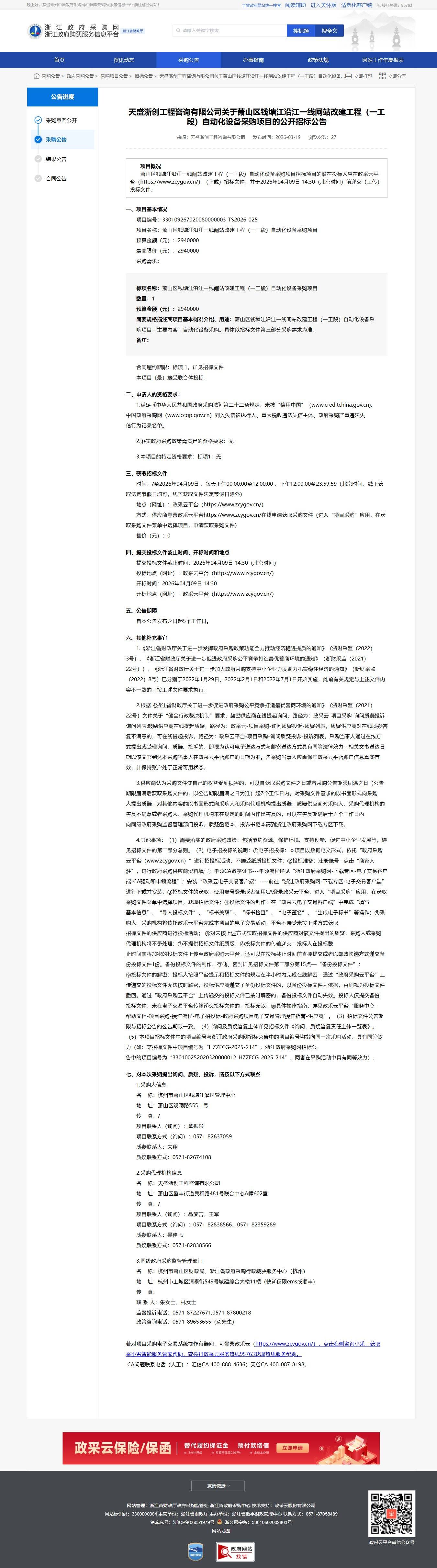 浙江關(guān)于蕭山區(qū)錢塘江沿江一線閘站改建工程(一工段)自動化設(shè)備采購項目的公開招標(biāo)公告