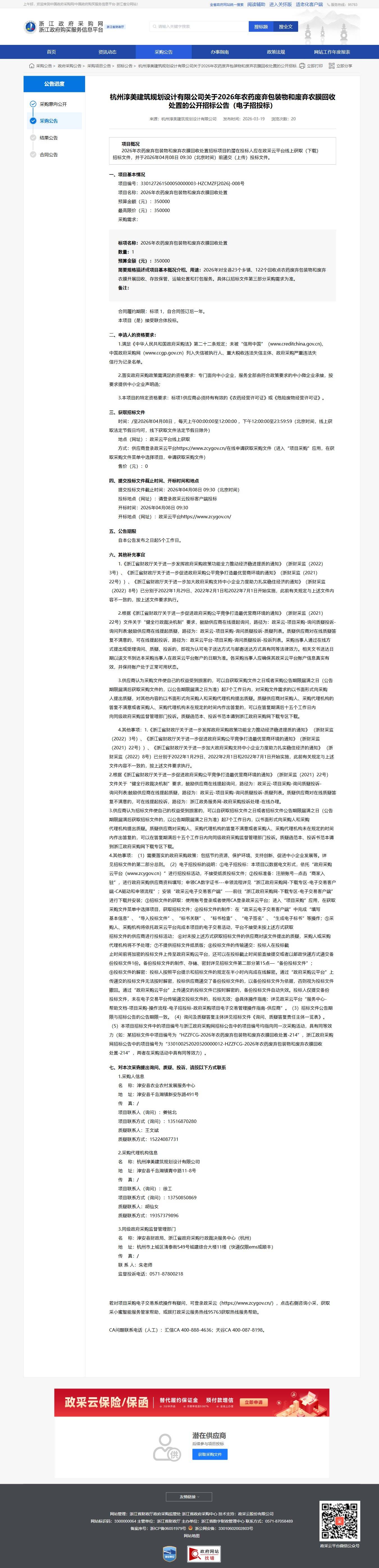 浙江關于2026年農藥廢棄包裝物和廢棄農膜回收處置的公開招標公告(電子招投標)