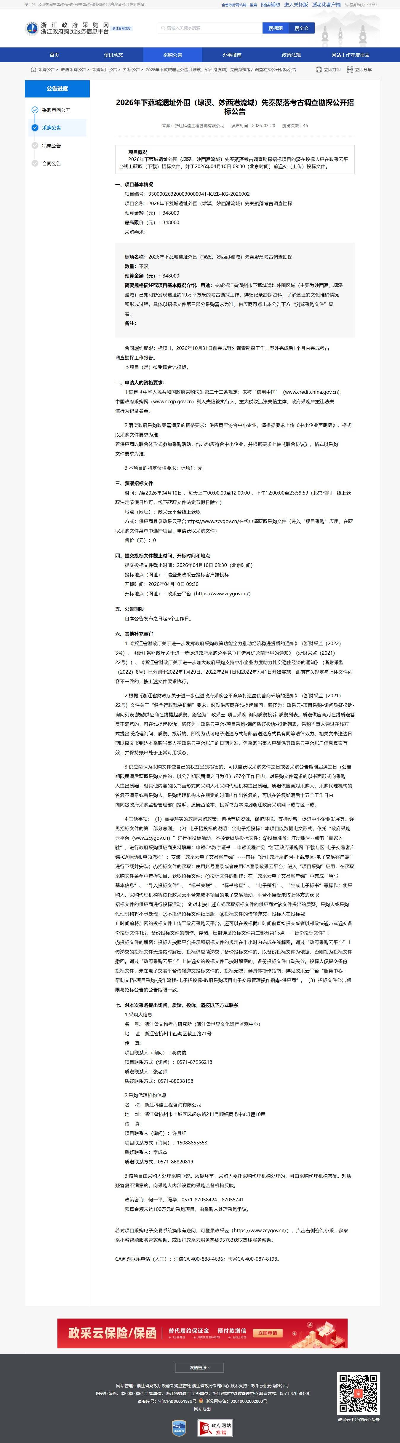 **項目概況**: 2026年下攻城遺址外圍(后溪、妙西港流域)先秦聚落考古調查勘探招標項目的投標人應在政采云平臺線上獲取(下載)招標文件,并于2026年04月10日09:30(北京時間)前遞交(上傳)投標文件。