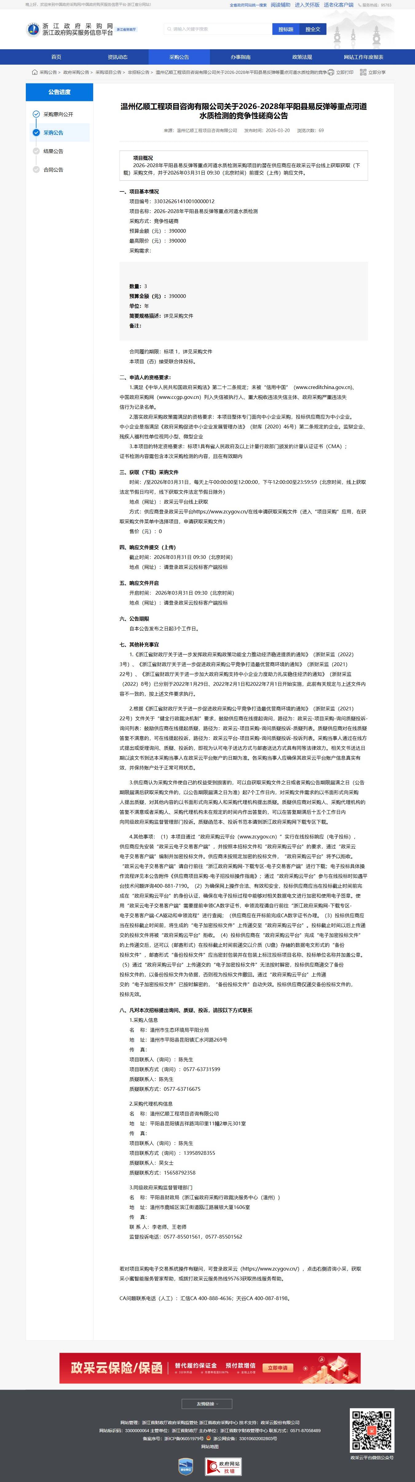 - 項目名稱: 2026-2028年平陽縣易反彈等重點河道水質檢測采購